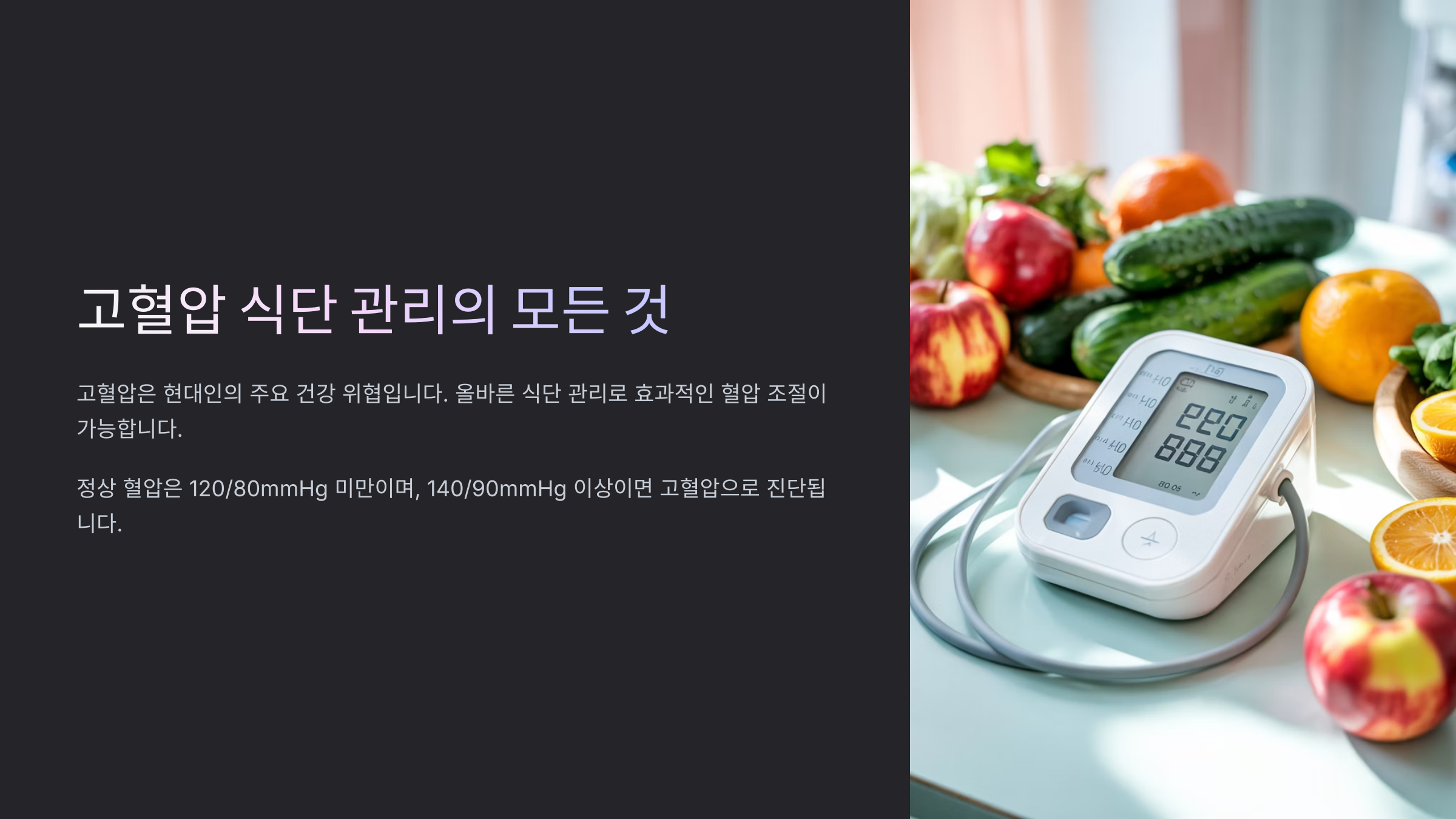 내가 생각했을 때 고혈압 관리는 '매일의 식탁'에서 시작되는 건강 루틴이에요. 짜게 먹는 습관만 고쳐도 혈압이 훨씬 좋아지더라고요.