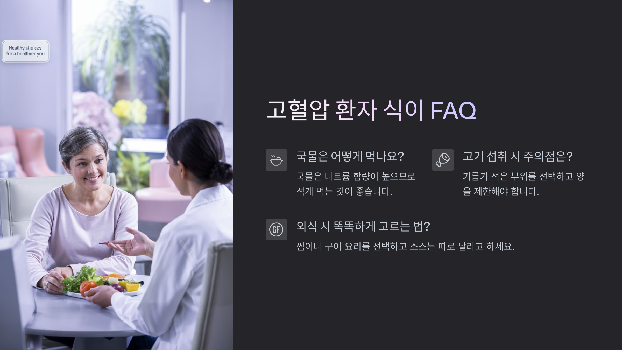 약물 치료도 중요하지만, 고혈압을 근본적으로 개선하려면 식이요법이 필수예요.