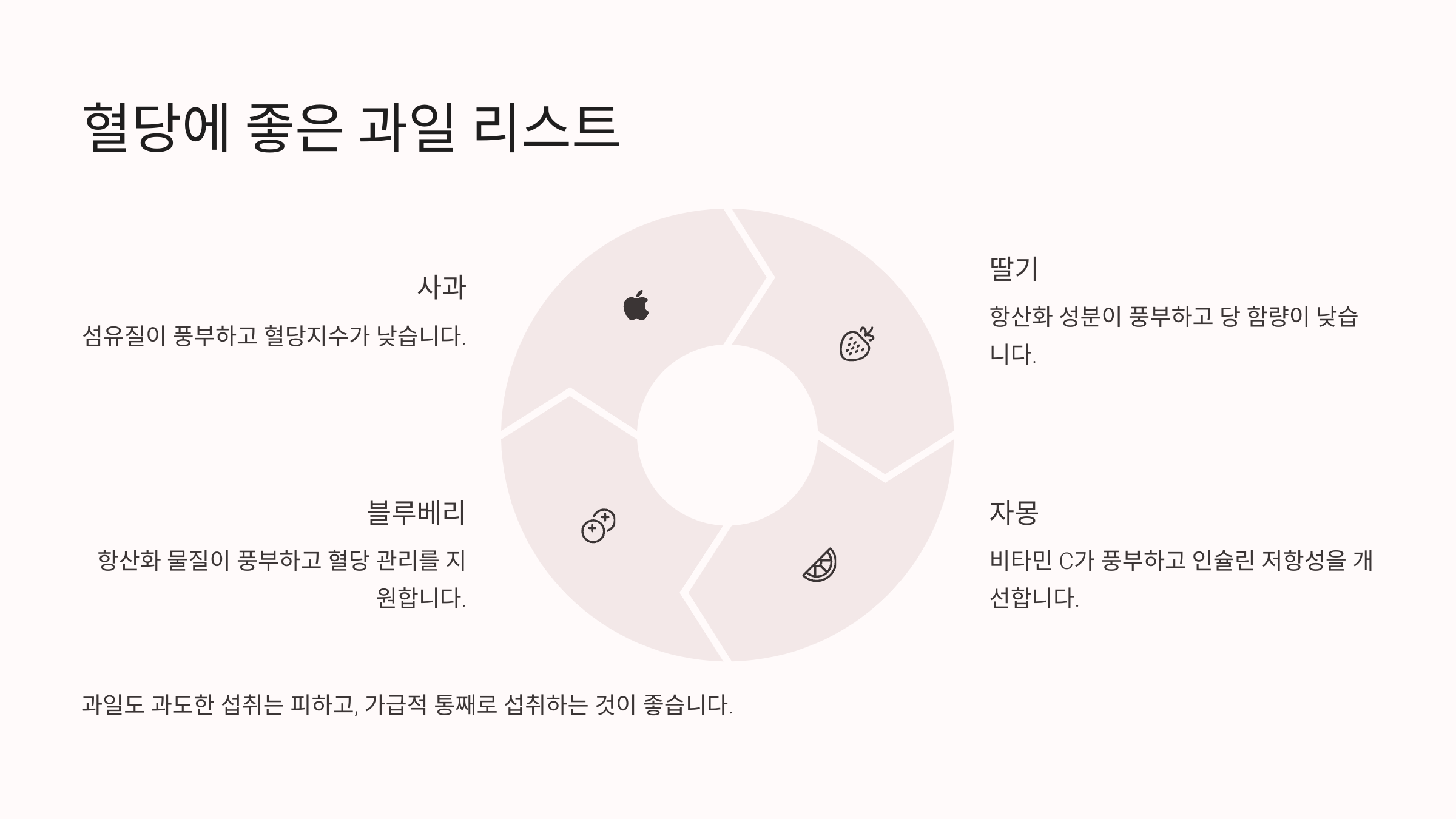 과일은 당이 많다고 해서 무조건 피해야 할 음식은 아니에요. 오히려 일부 과일은 풍부한 식이섬유, 항산화물질, 비타민 덕분에 혈당 관리에 긍정적인 역할을 해줘요. 핵심은 ‘적절한 양’과 ‘저GI 과일’이에요.
