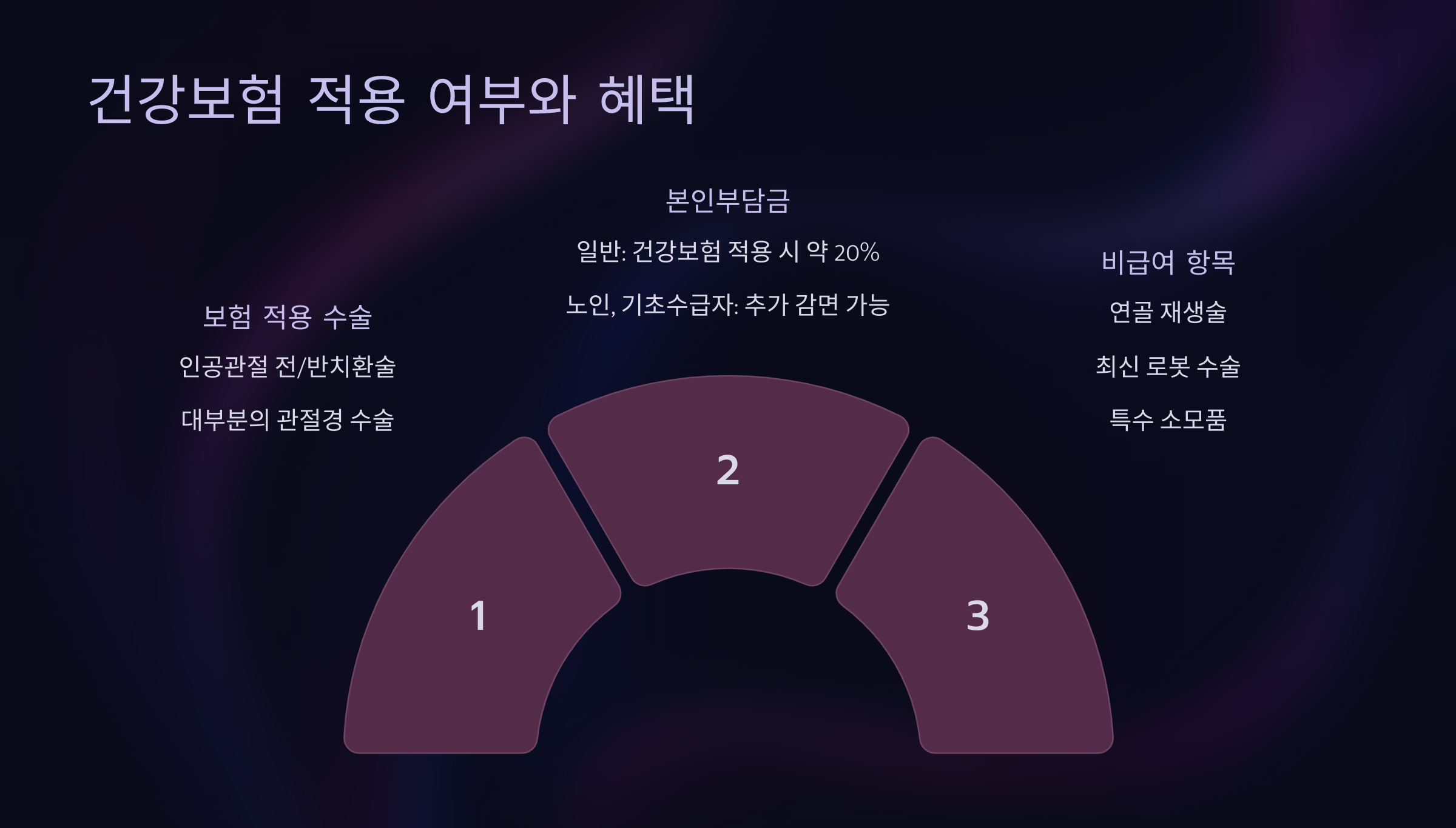 보험 적용이 되면 수술비와 입원비, 마취비, 검사비 중 일부가 본인부담금으로 전환돼요. 일반적으로 20~30% 정도만 본인이 부담하고 나머지는 공단에서 지원해줘요. 하지만 비급여 항목은 예외예요. 대표적인 예가 고급 인공관절이나 수입산 나사, 1인실 이용비 등이에요.