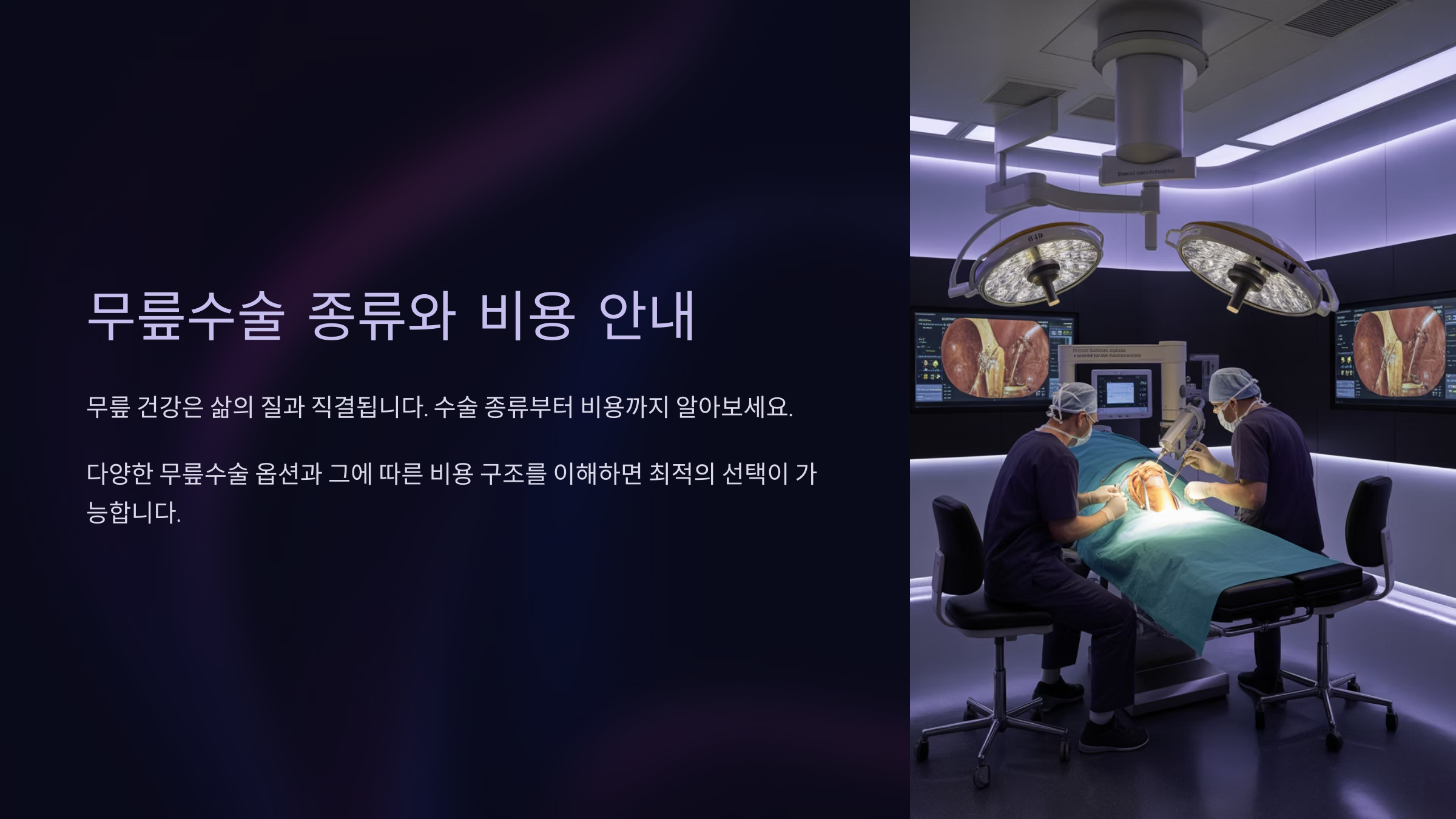 이 외에도 연골재생술, 반월상연골 이식술처럼 좀 더 정밀하고 특수한 수술도 있어요. 각각의 수술은 치료 목적과 비용 구조가 전혀 다르기 때문에 본인 상태에 맞는 수술을 정확히 파악하는 게 가장 중요해요.