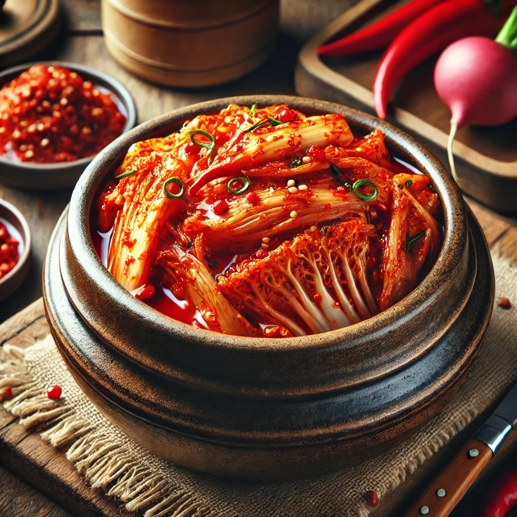 김치는 유산균이 풍부하게 함유되어 있어 장 건강에 도움을 주며, 항산화 성분인 비타민 C와 베타카로틴이 다량 포함되어 있어 면역력을 강화합니다.