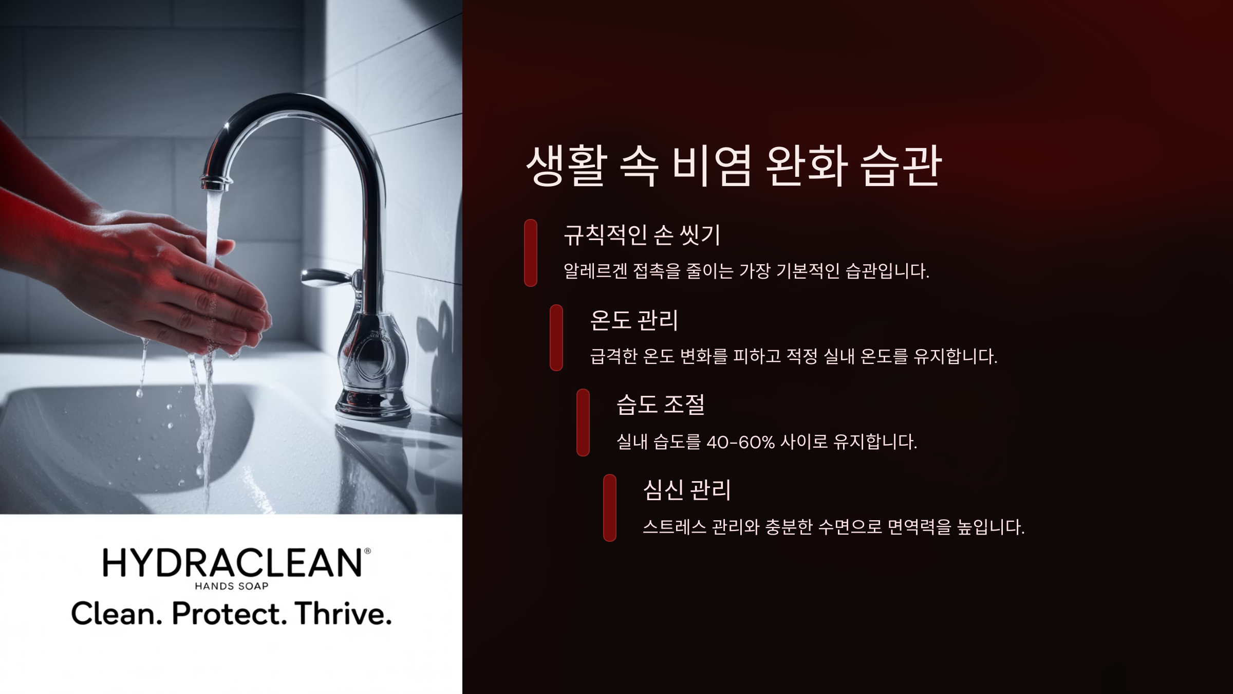 생활 속 비염 완화 습관 비염은 꾸준한 생활 관리가 정말 중요해요. 약을 끊고도 증상을 완화시키려면 매일 실천할 수 있는 작은 습관부터 바꿔야 하죠. 우선 집 안 청소를 꼼꼼히 해주는 것이 기본이에요. 특히 먼지와 진드기가 많은 침구류는 일주일에 한 번 60도 이상의 온수로 세탁하고 햇빛에 바짝 말리는 것이 좋아요.