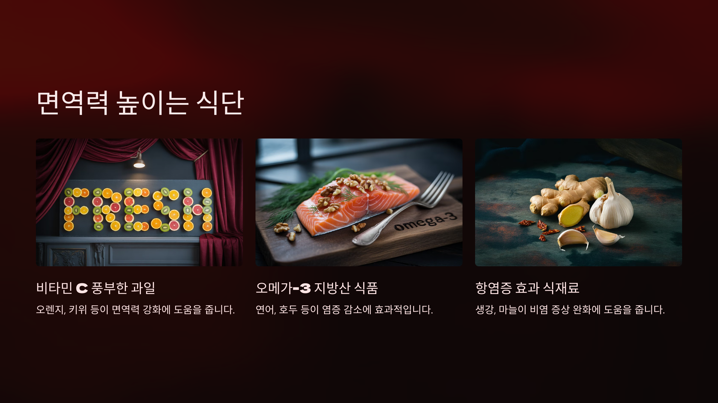 비염은 면역과 관련이 깊기 때문에 식단 관리도 정말 중요해요. 아무리 환경을 깨끗이 하고 코를 관리해도, 몸속 면역력이 떨어져 있으면 쉽게 재발하거든요. 그래서 면역력을 튼튼하게 해주는 음식들을 챙겨 먹는 게 필요해요. 가장 기본이 되는 건 항산화 성분이 풍부한 과일과 채소예요.대표적인 면역 강화 식품으로는 브로콜리, 시금치, 당근, 마늘, 생강 등이 있어요. 브로콜리와 시금치는 비타민 C와 K가 풍부해서 염증을 줄이는 데 도움을 주고요. 마늘은 알리신이라는 성분 덕분에 항바이러스, 항균 작용이 탁월하죠. 생강은 코를 따뜻하게 해줘서 점막을 편안하게 만들어줘요.