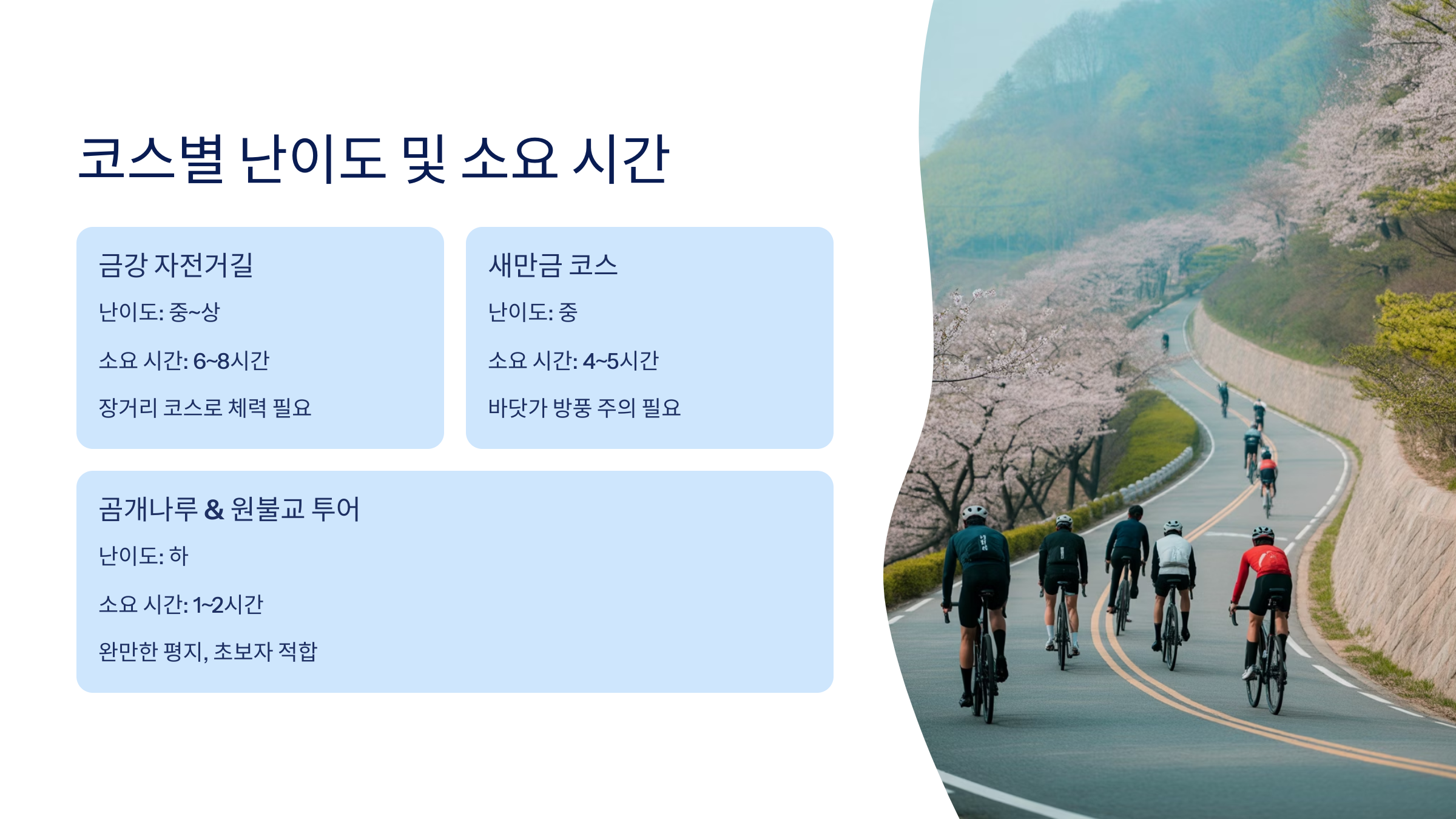 다음 섹션에서는 자전거 여행 시 꼭 알아두면 좋은 꿀팁과 코스별 맛집, 숙소, 필수 준비물도 알려드릴게요! 🧳🚴♂️