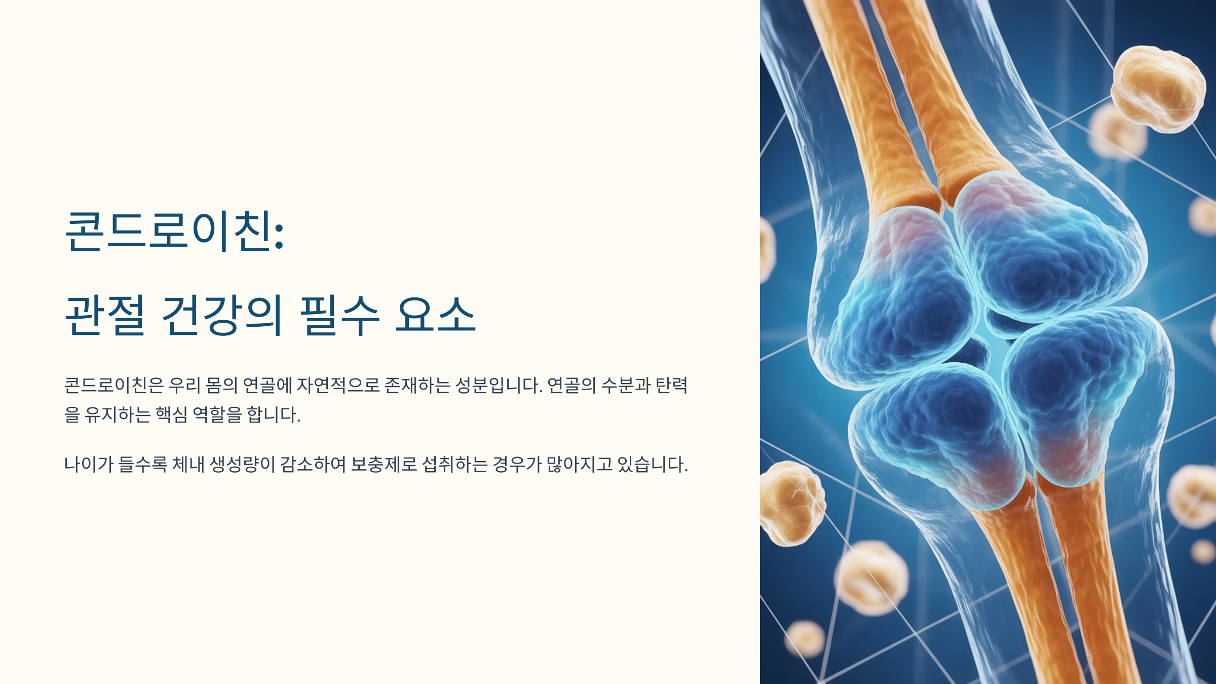 콘드로이친은 단순한 영양 보충제가 아니라, 꾸준히 연구되고 있는 생리활성 물질이에요. 연골뿐 아니라 피부, 혈관 건강에도 관련이 있는 것으로 알려져 있어요. 오늘은 2025년 현재 기준으로 최신 정보를 바탕으로 콘드로이친의 효능과 활용법에 대해 자세히 살펴볼게요. 😊