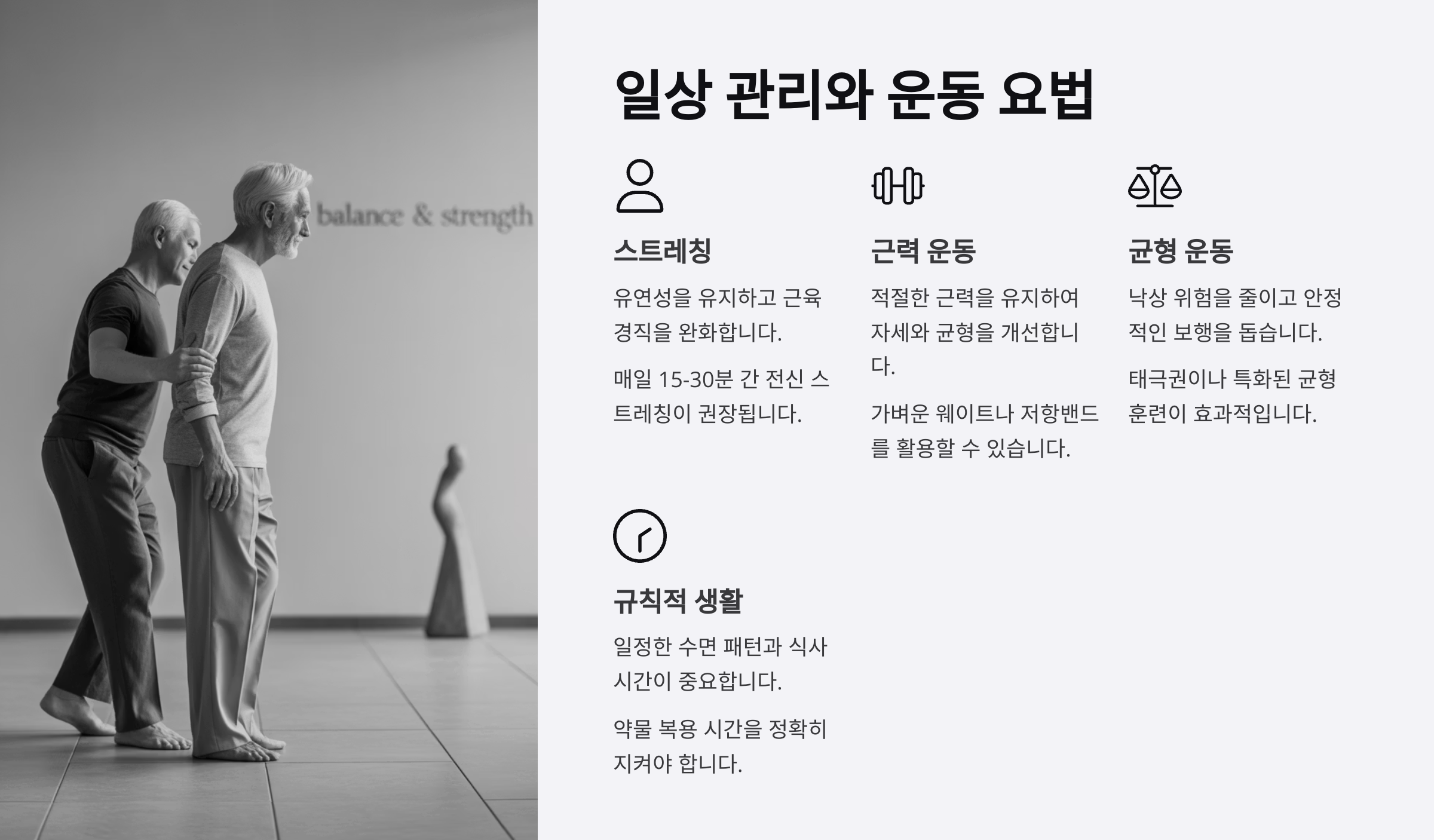 파킨슨병 환자에게 가장 중요한 것 중 하나가 바로 규칙적인 생활과 운동이에요. 병의 진행을 늦추고 증상을 완화하는 데 있어 운동만큼 효과적인 게 드물어요. 실제로 꾸준한 신체 활동은 뇌 속 도파민 작용을 촉진시키고, 균형 감각과 근육 조절 능력을 개선시켜줘요.