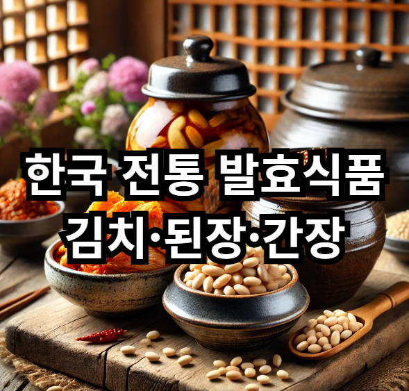 김치, 된장, 간장은 한국의 대표적인 발효식품으로, 그 맛과 건강 효능으로 인해 사랑받고 있습니다. 이들 발효식품은 각각 독특한 맛과 조리법을 가지고 있으며, 한국의 식문화에서 중요한 역할을 하고 있습니다.