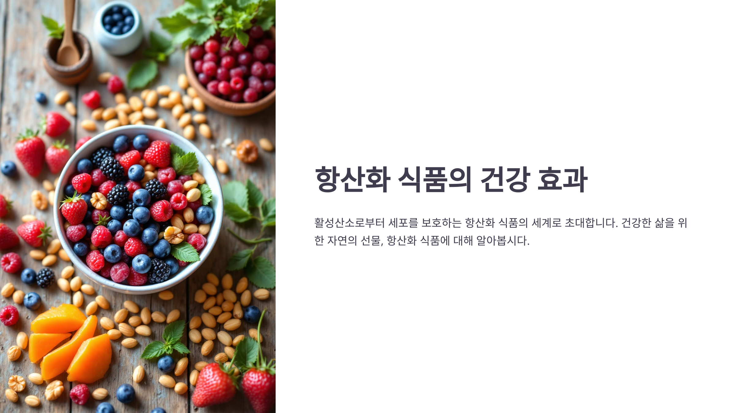 우리가 매일 먹는 음식 중 일부는 우리 몸속 세포를 보호하고 노화를 늦춰주는 강력한 무기가 되어준다는 사실, 알고 있었나요? 바로 항산화 작용을 하는 음식들이에요! 🍽
