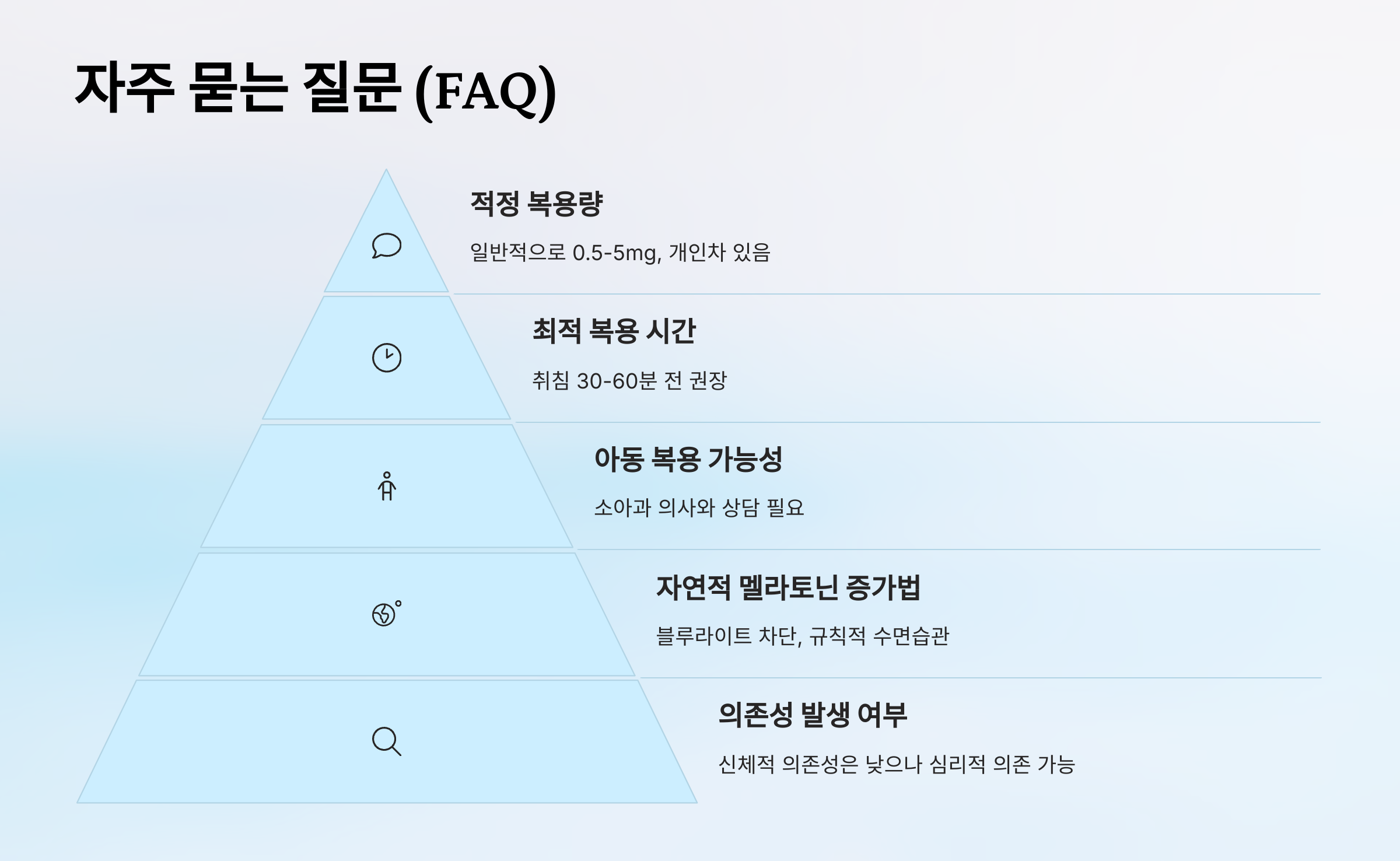 첫째, 복용량이에요. 일반적으로 성인은 1~3mg 정도가 적당해요. 드물게 5mg까지 복용하는 사람도 있지만, 고용량이 효과를 더 높인다는 근거는 부족해요. 오히려 과다 복용 시 두통, 어지럼증, 낮 시간 졸림 같은 부작용이 생길 수 있어요.