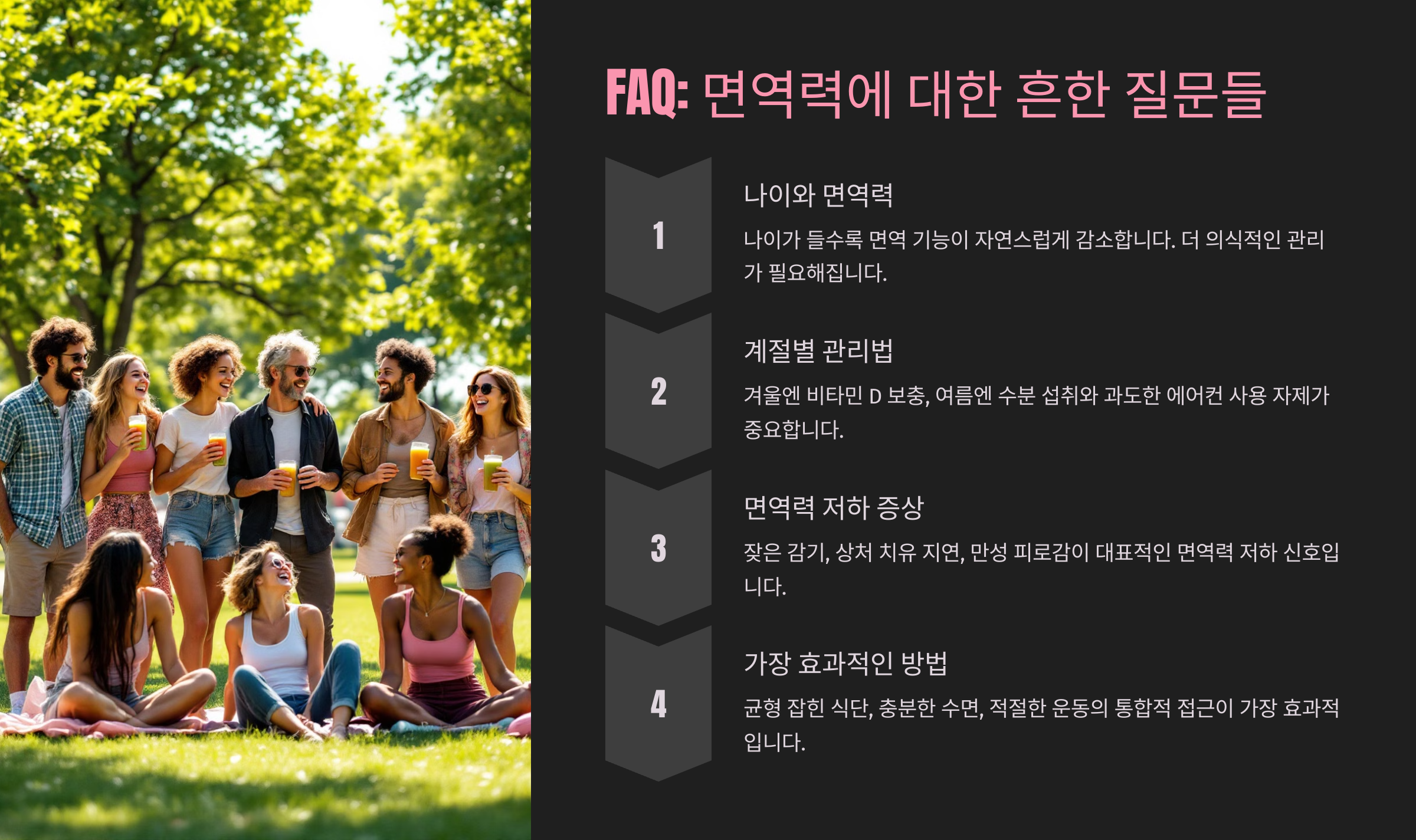 또한 현대 의학에서는 면역력을 높이는 것이 단순한 예방 차원을 넘어서 만성 질환과 염증성 질환을 막는 핵심 요소로 자리 잡고 있어요. 면역력은 단순히 '감기에 덜 걸리는 것' 이상이라는 사실, 알고 계셨나요?😉