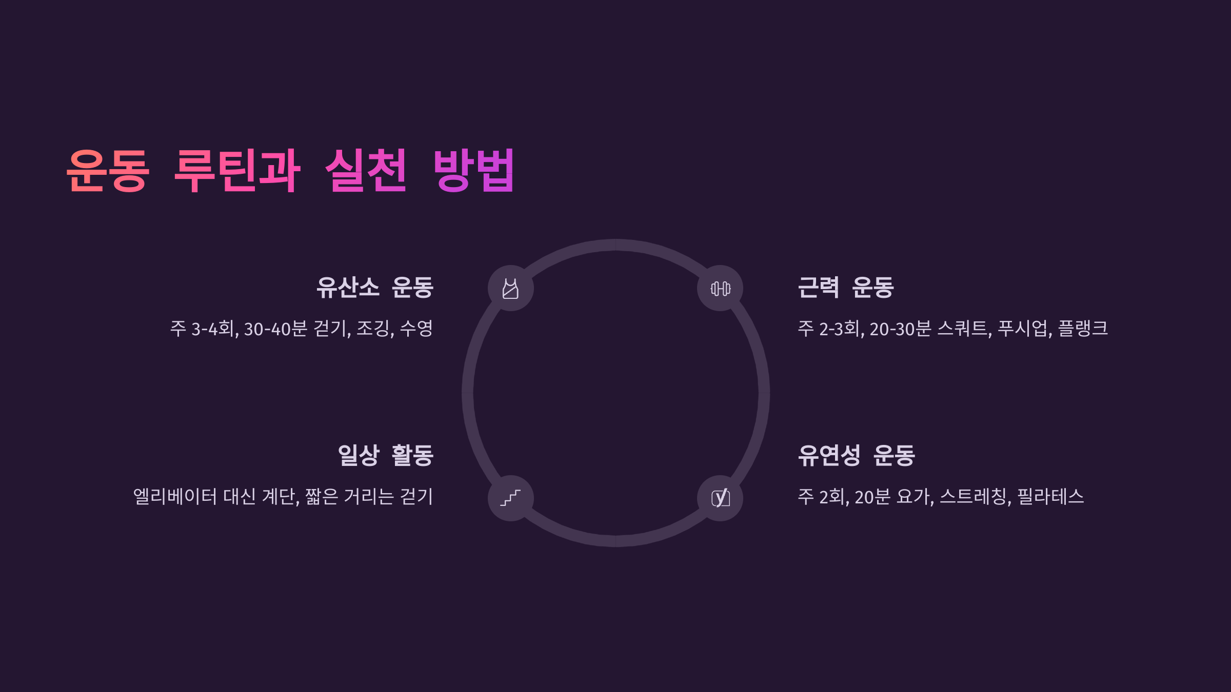 구분 다이어트 전 다이어트 후 체중 68kg 60kg 체지방률 31% 22% 허리둘레 88cm 75cm 혈압 135/90 118/78 혈당 110mg/dL 95mg/dL 🏋️ 운동 루틴과 실천 방법