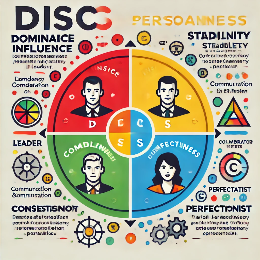 DISC(Behavioral Assessment)는 윌리엄 마스턴의 행동 모델을 기반으로 만들어졌으며, 지배(Dominance), 영향(Influence), 안정(Steadiness), 준수(Compliance)의 네 가지 요소로 인간의 행동 스타일을 분류합니다.