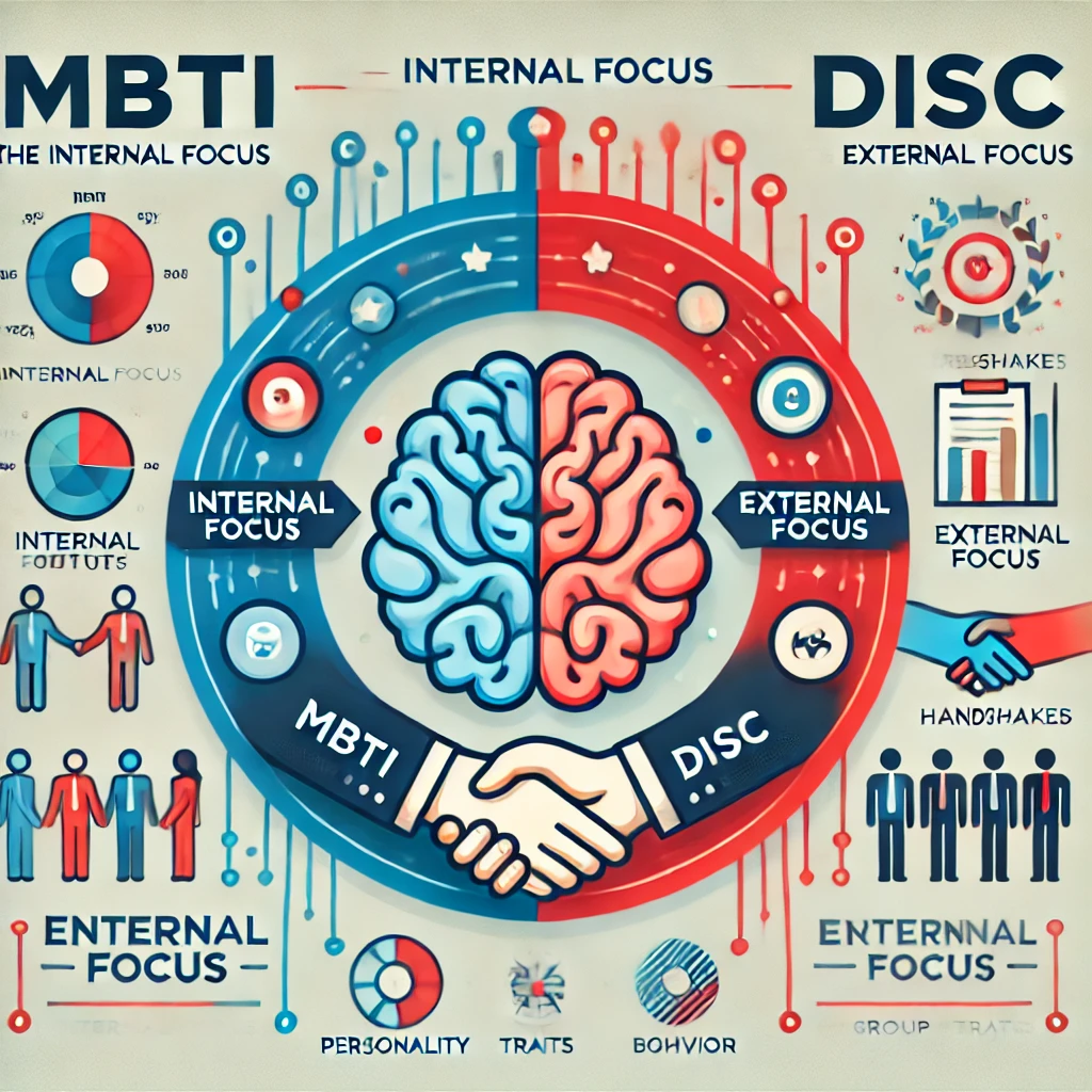 MBTI는 심리학적 접근을 통해 개인의 내면 성향과 심리적 동기를 파악하는 데 초점을 둡니다. 이는 성격의 깊은 본질과 개인적 특성을 이해하는 데 매우 유용합니다. 반면 DISC는 행동학적 접근을 채택하여 외부에서 관찰 가능한 행동 패턴을 중심으로 분석합니다. 이로 인해 DISC는 대인관계와 조직 내 행동 분석에 적합합니다.