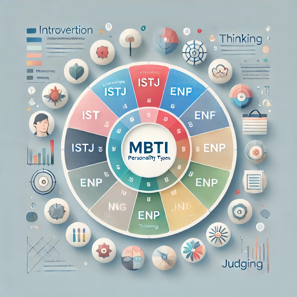 MBTI(Myers-Briggs Type Indicator)는 심리학자 칼 융의 심리유형 이론을 토대로 개발된 성격 유형 검사입니다. 에너지 방향(E/I), 인식 방식(S/N), 판단 방식(T/F), 생활 양식(J/P)의 네 가지 지표를 기반으로 16개의 성격 유형으로 구분됩니다.